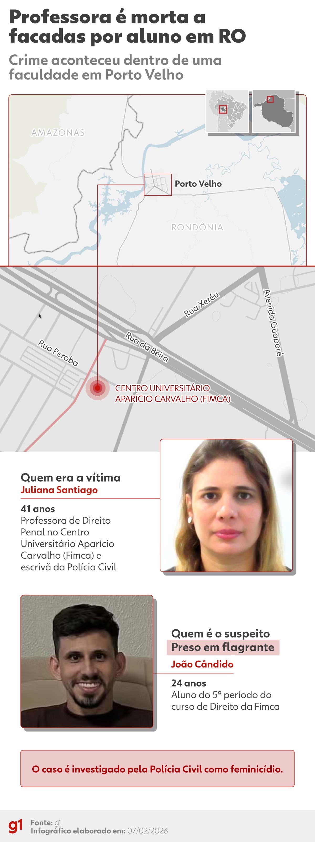 INFOGRÁFICO - professora é morta a facadas por aluno em faculdade de Rondônia