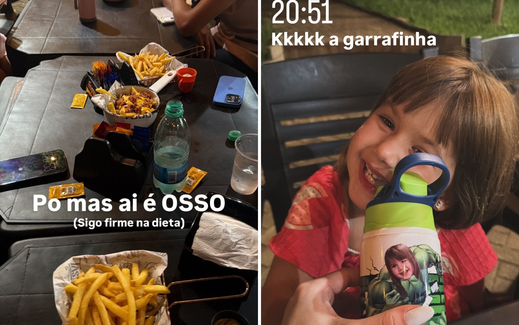 As imagens mostram o grupo reunido em um pit dog da capital, em clima informal e familiar. Apesar da repercussão, Virginia fez apenas duas publicações nos stories durante a noite. Em uma das imagens, ela mostrou a mesa com porções e escreveu: “Pô, mas aí é osso (sigo firme na dieta)”. Em outro registro, aparece uma das filhas sorrindo ao segurar uma garrafinha personalizada, acompanhada da legenda: “kkkkk a garrafinha”.